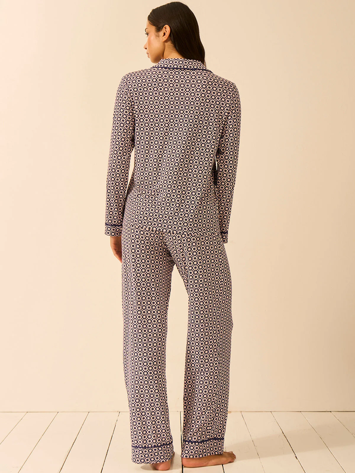 Meet your new night-time obsession. Our Long Pajama Set in Mosaic Nights, designed to elevate every night-time ritual, slow Sunday morning, and indulgent lazy day. Made from sumptuously soft, ultra-breathable fabric that keeps you cool and comfortable all night long, this set transforms every moment into pure indulgence. Feels so good, going out stops sounding like a good idea.